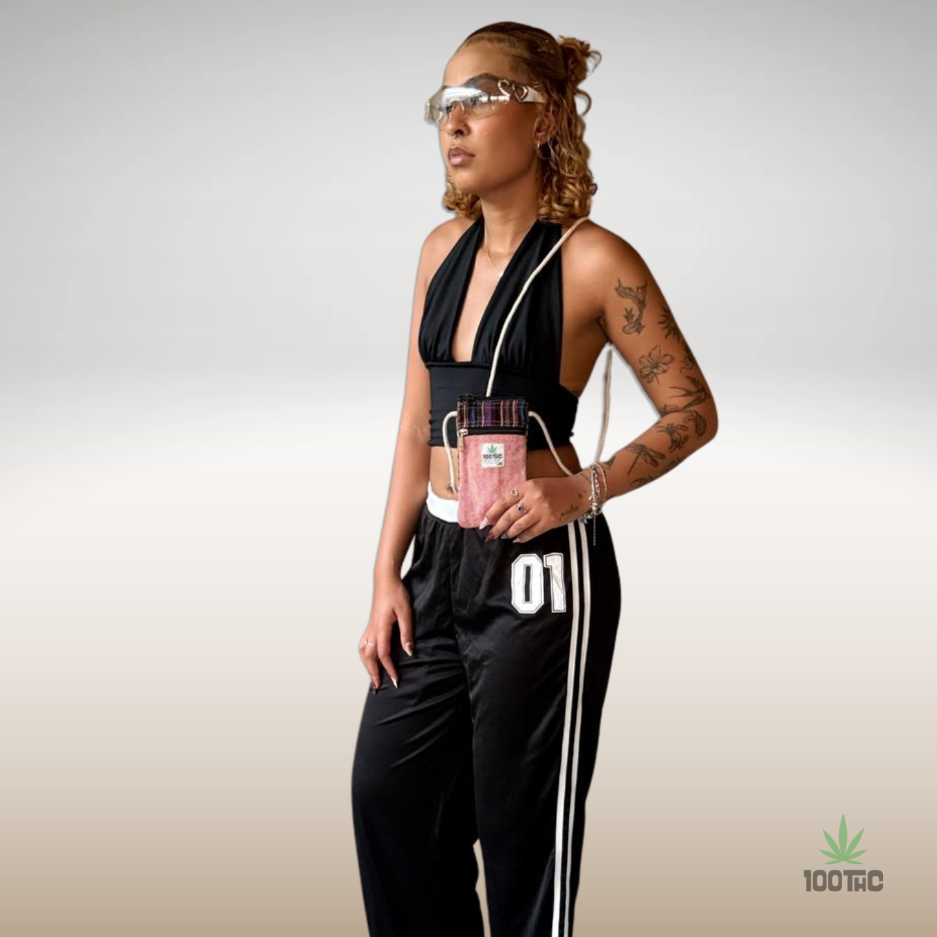 O Porta Óculos de Cânhamo 100THC é produzido artesanalmente no Nepal, combinando cânhamo natural e algodão em um tecido resistente, com estampa étnica vibrante e acabamento reforçado.
